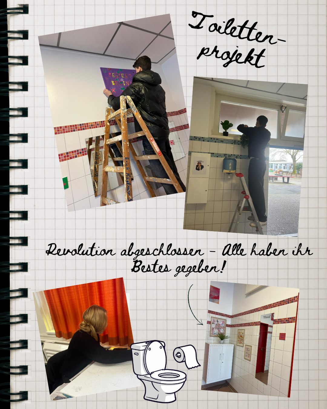 Verantwortung beginnt jetzt. Was früher ein Problem war, ist heute ein Zeichen für Veränderung. Dank der Unterstützung des Fördervereins und dem tatkräftigen Einsatz des 10.Jahrgangs sowie unserm Hausmeister Herr Janßen und Frau Sartison konnten unsere Toiletten neu gestaltet werden.